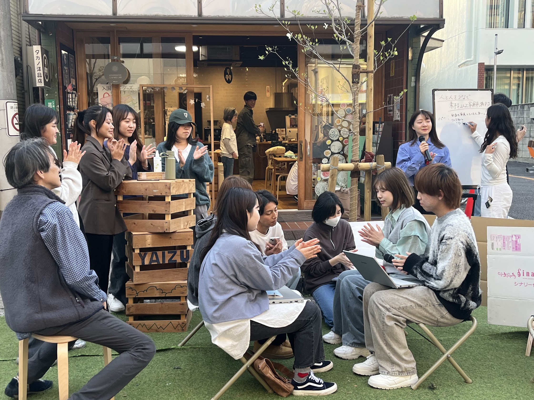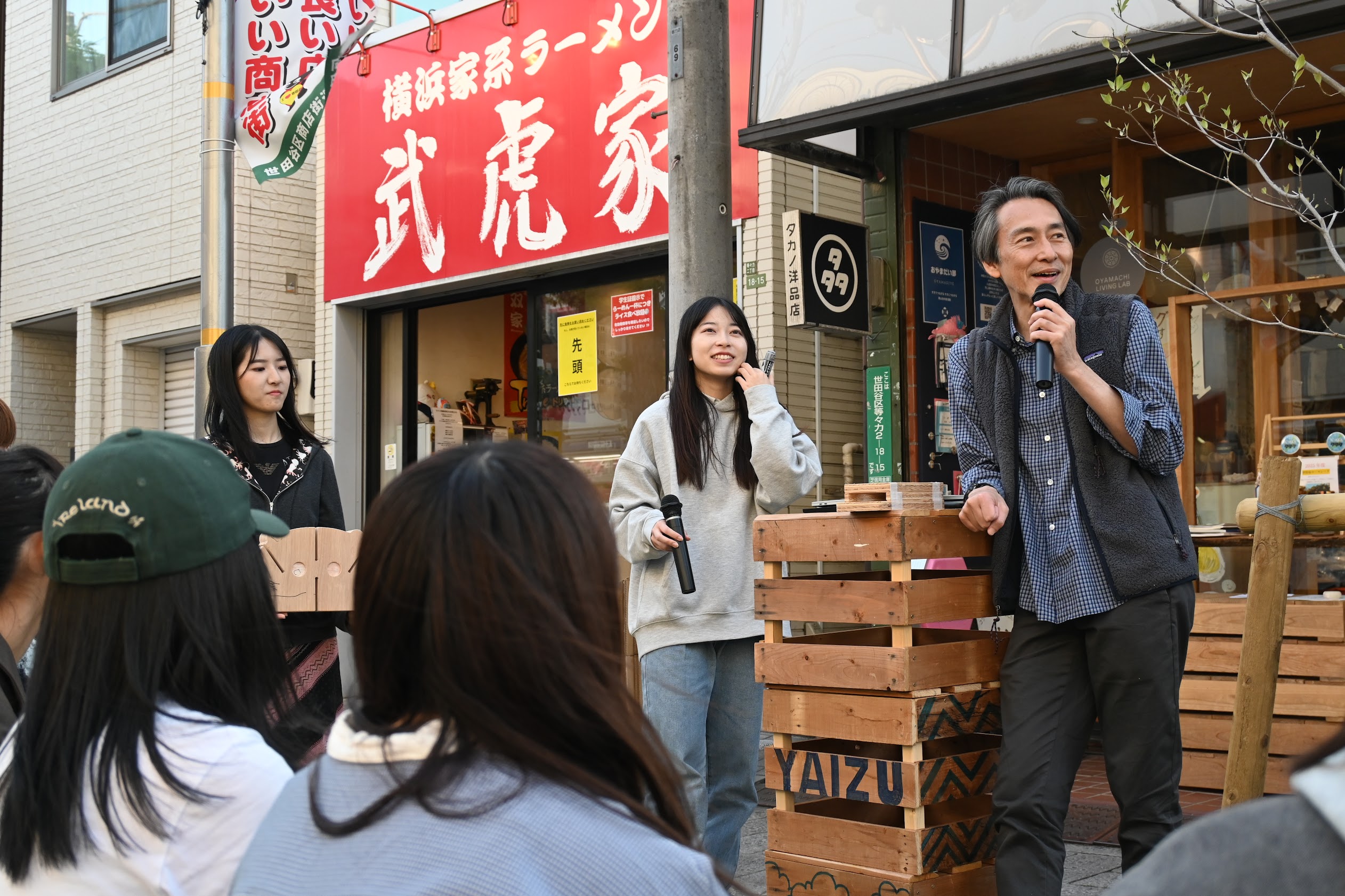 2週目のゼミは、毎年恒例ホコ天ゼミ。今年はちょっと風がありましたが快晴&あたたかい最高の天気。
