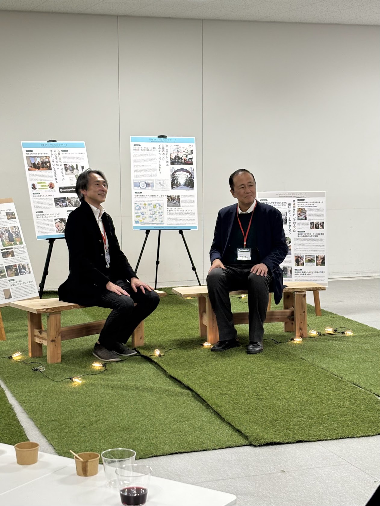 保坂区長も参加いただきました。川場村の広葉樹でつくったベンチに座って。