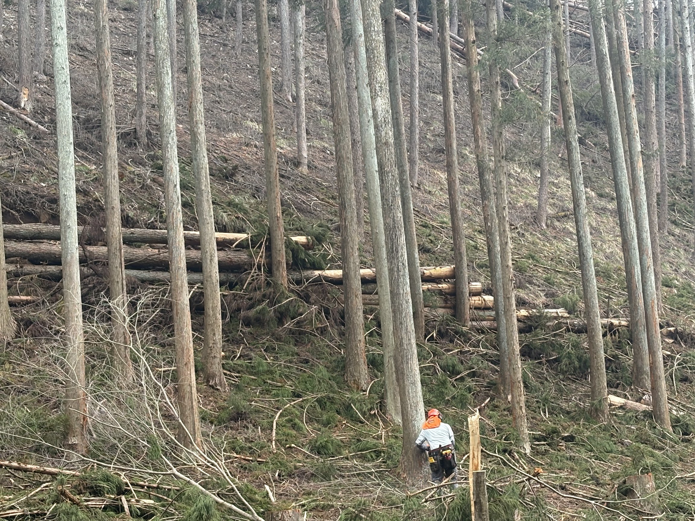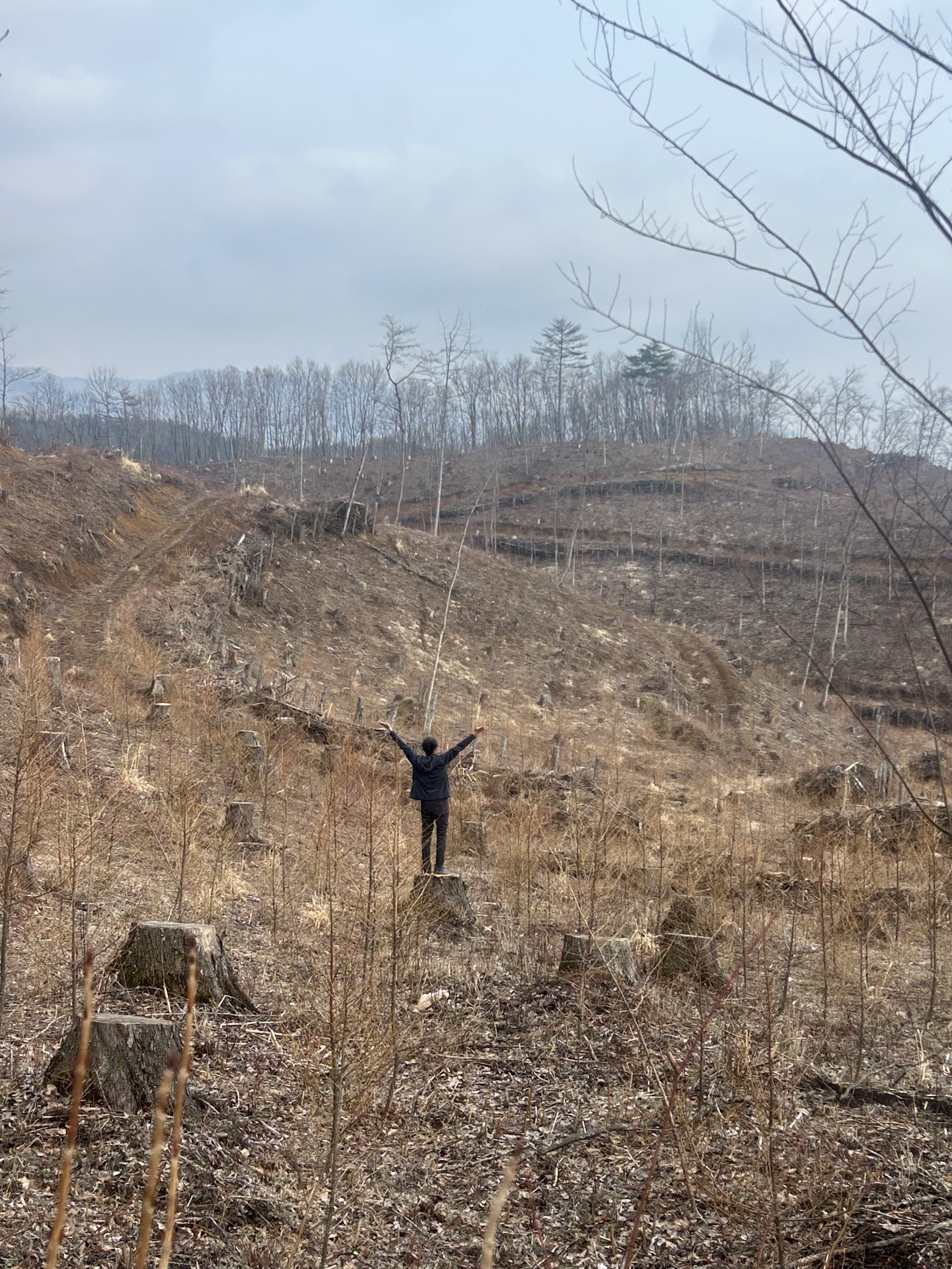 こちらは伐採し、植林中の場所。広葉樹などは残して伐採することで、生物の多様性が保たれ、環境への良い効果があるそうです。