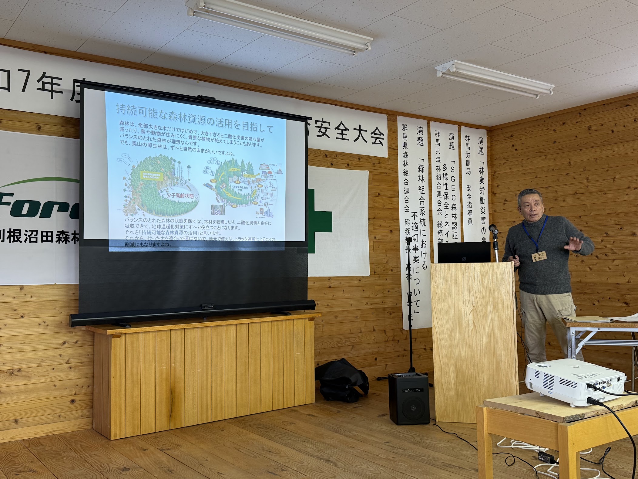 午後は、森林組合専務の佐藤さんよりレクチャー。林業の課題や森林資源の循環、そして森林組合で取り組む環境保全のアセスメントなどについて教えてもらいました。